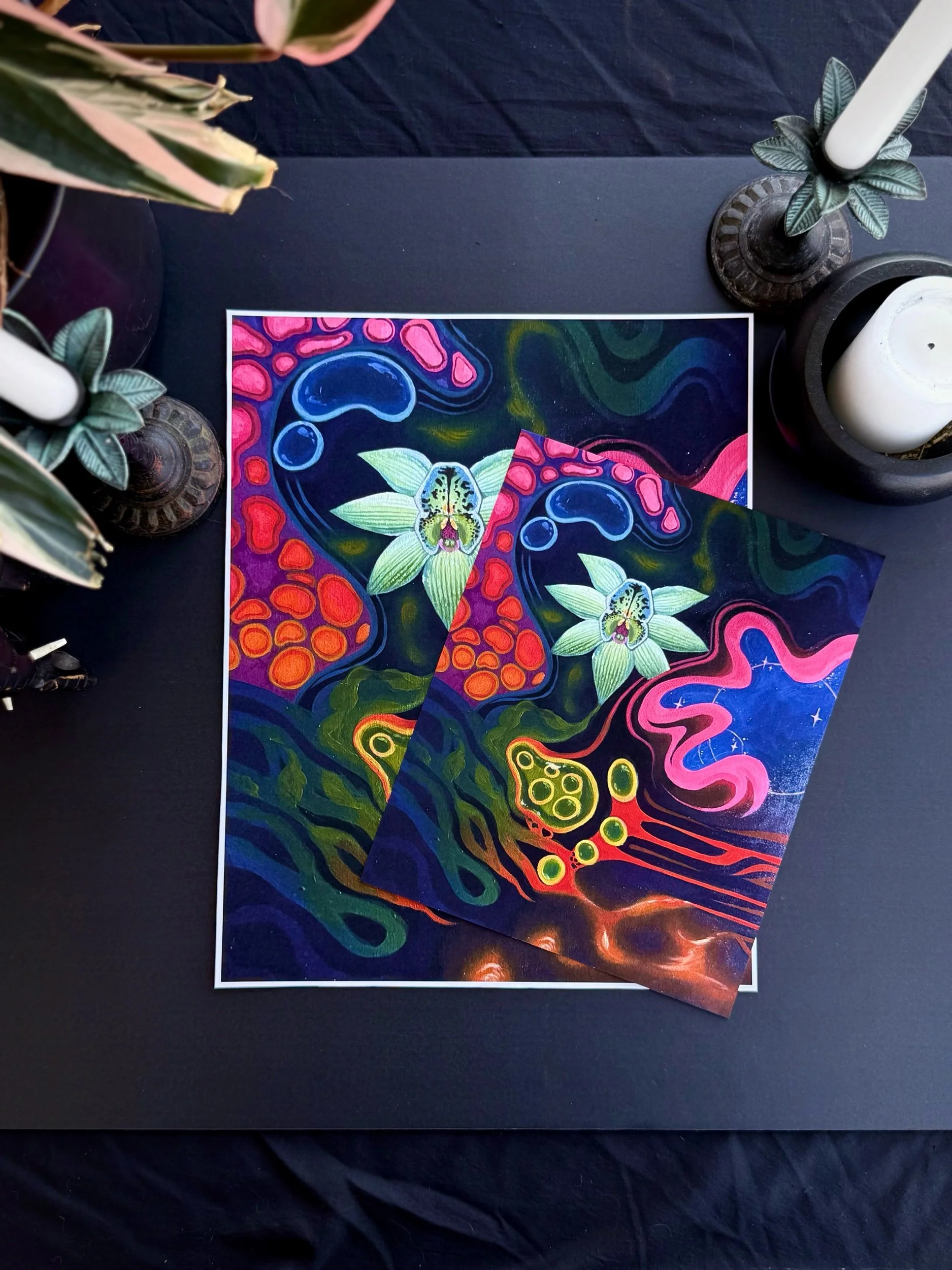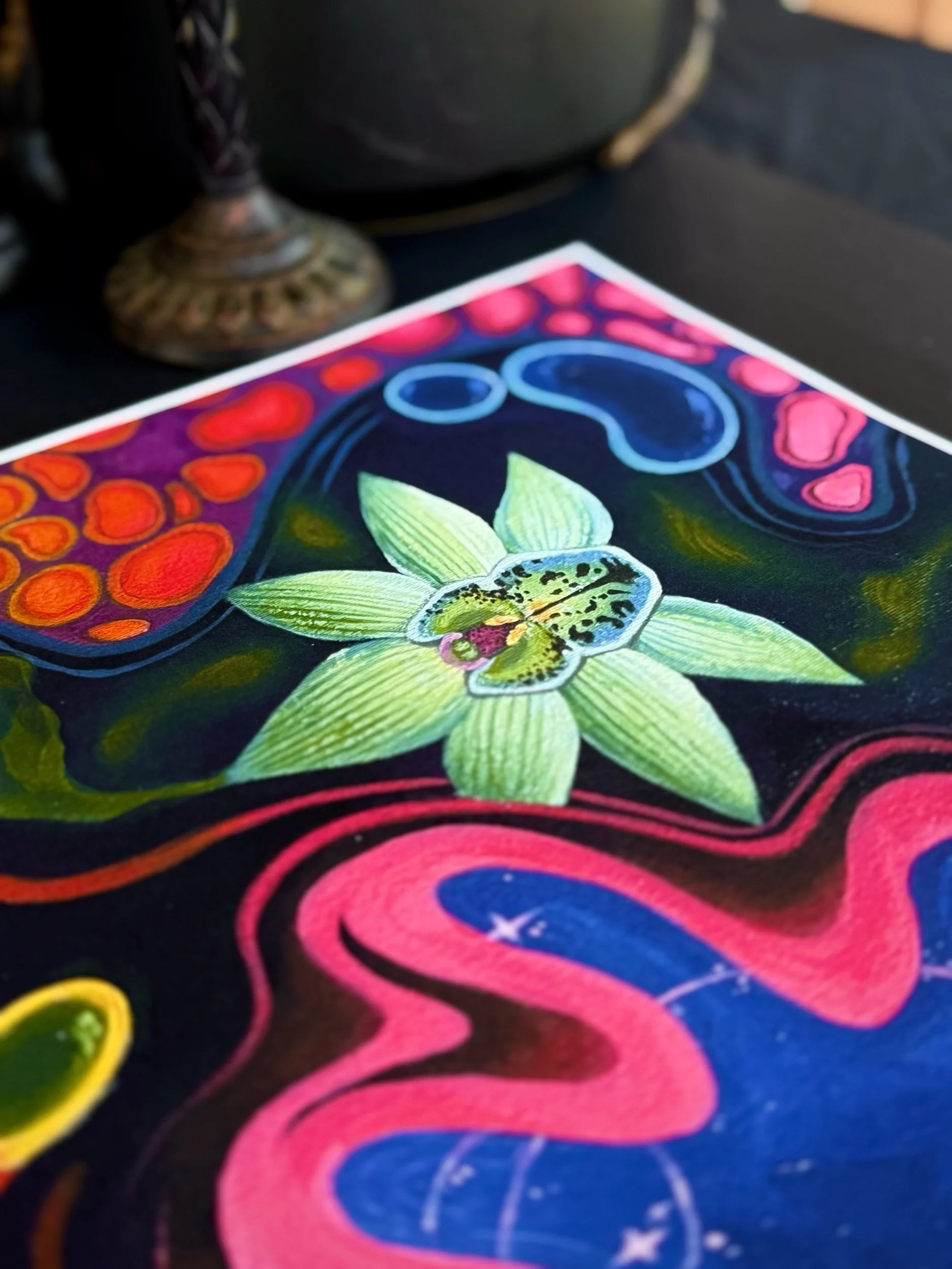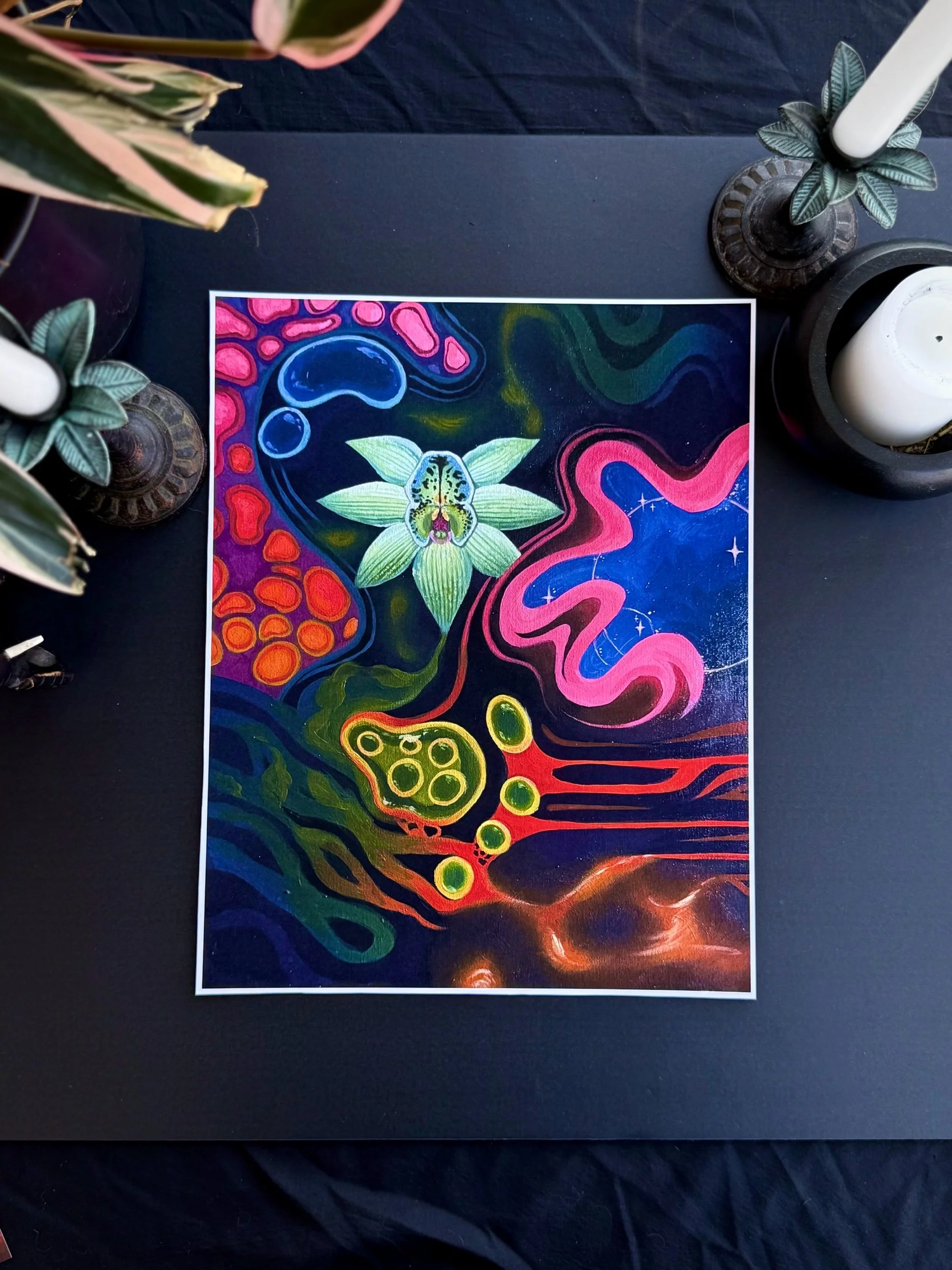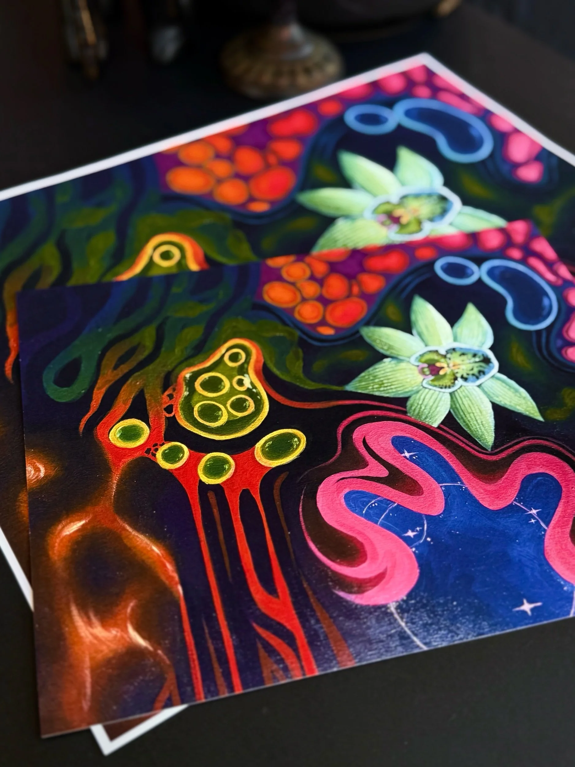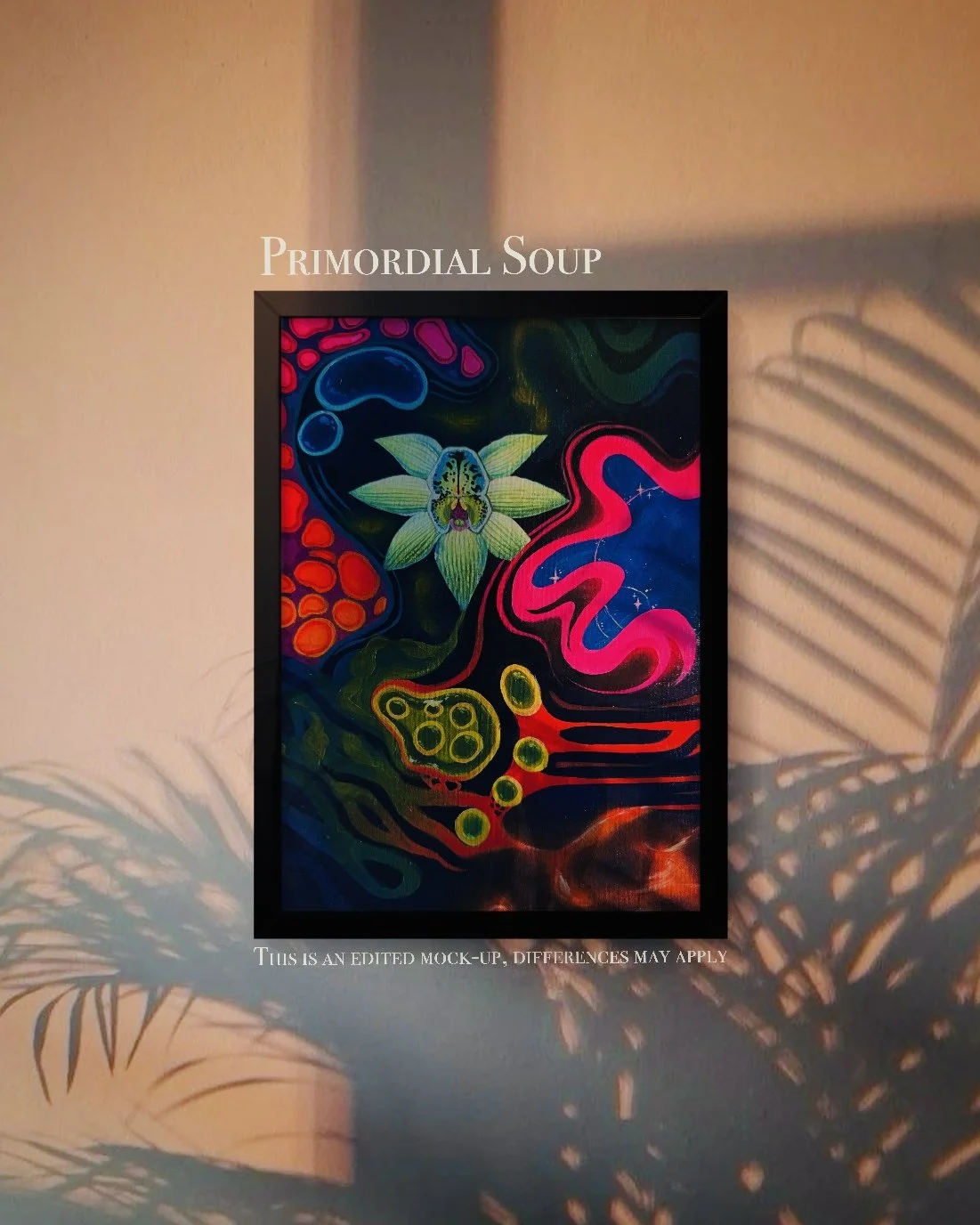 An archival, 250 gsm print of the original painting, “Primordial Soup.”