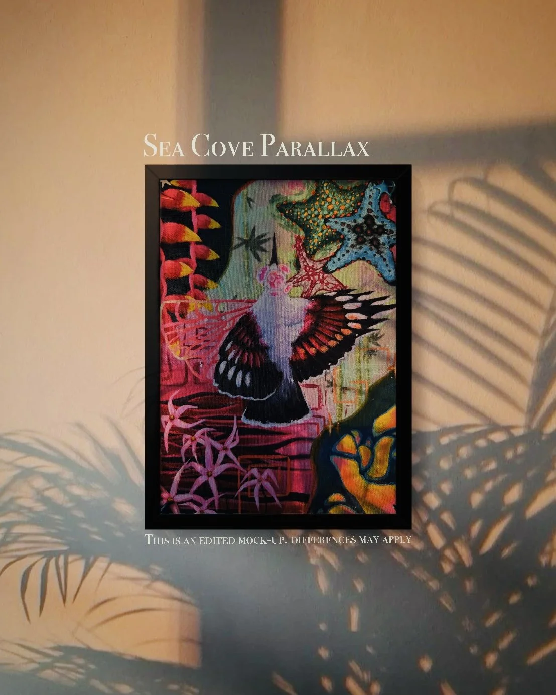 A archival, 250 gsm print of the original painting, “Sea Cove Parallax.”